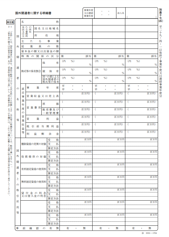 そんな別表の一つに別表17(4)「国外関連者に関する明細書」が挙げられると思います。