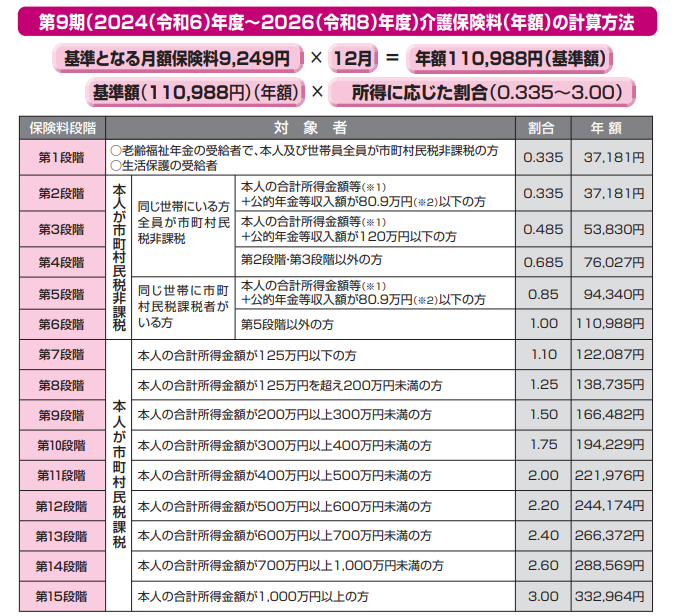 介護保険料の計算方法は次のとおりとなります。