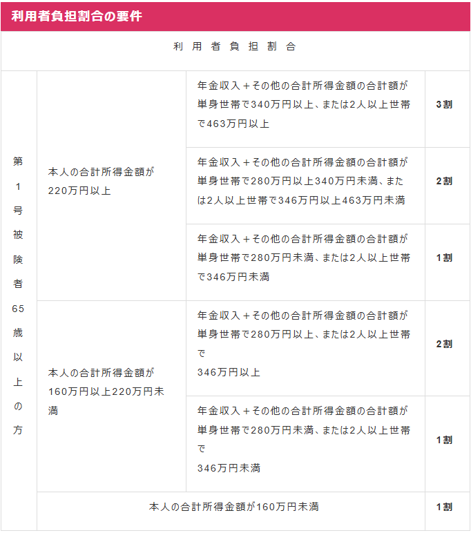 介護保険の自己負担割合の判定は次のとおりとなります。